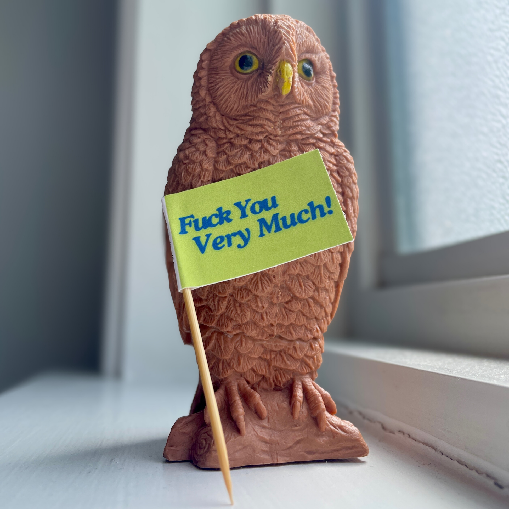 A gag gift for someone who will immediately name the person it's for. White elephant standout. Emergency glove compartment needs. Your desk drawer. The ex on the wrong side of the break-up.