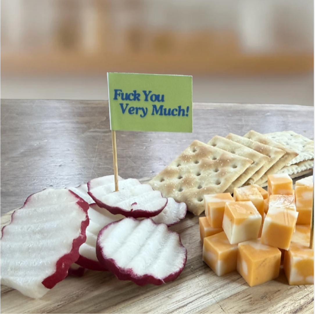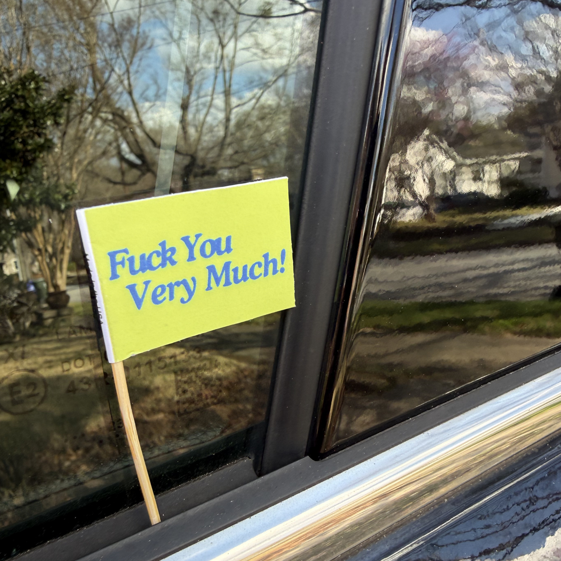 - (6) 2.5" toothpick flags - the exact right size to leave on a windshield, in a drawer, under a notepad